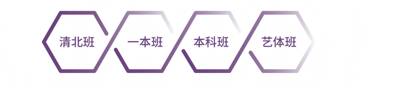 学校根据学生特点分班,设有四类班级,分别针对学生的思维创造能力、方法运用能力、知识掌握能力进行提升,全面贯彻分层教学、个性化教育理念。