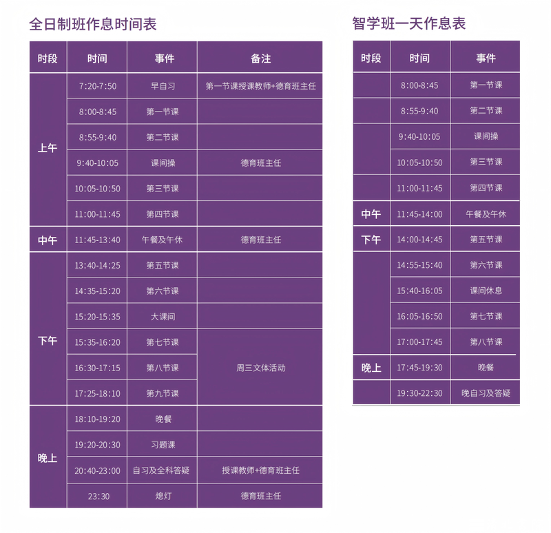 通过科学分配学生的在校时间,帮助学生提升学习效率,迸发学习热情,建立学习自信,培养拥有主观能动性和研究探索能力的综合型人才。