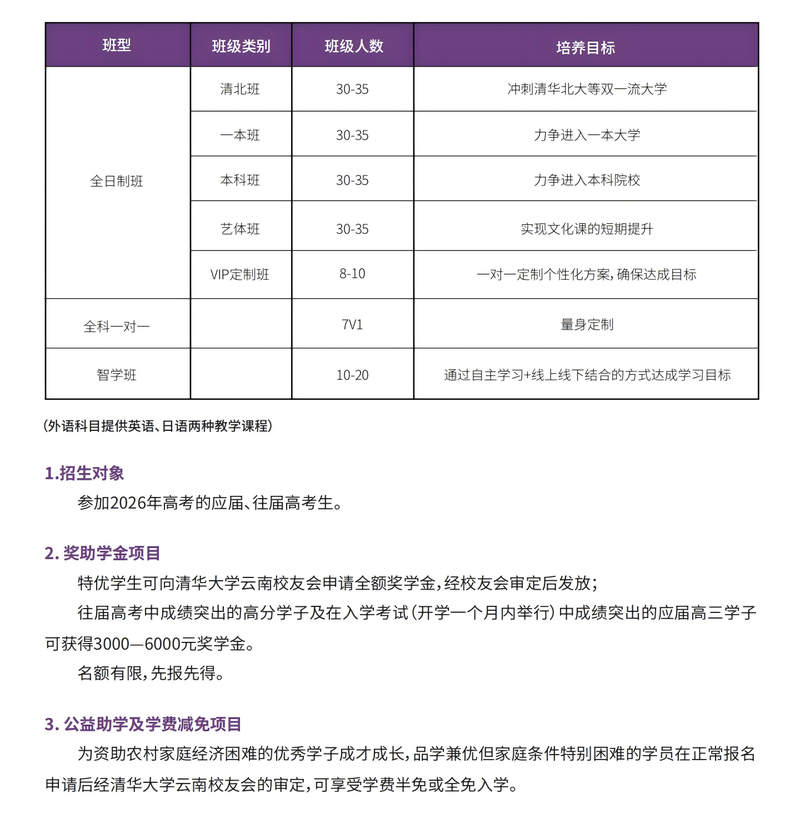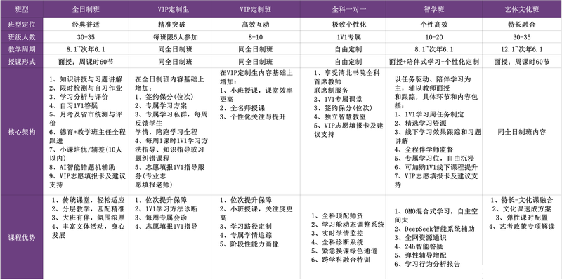 清北计划:优上更优,帮助成绩优异的学生,使相对弱势的科目达到可以冲击清华北大的分数。