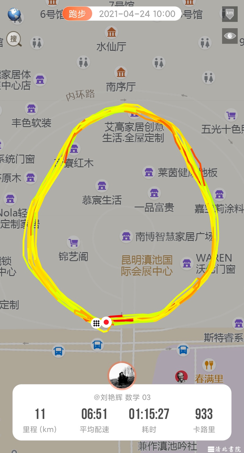 刘艳辉老师更是一个人跑了11km,呼应母校的110周年庆典。