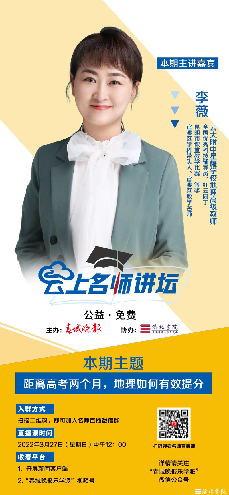 本周日中午12:00 | 文科生最头疼的地理怎样提分?云大附中高级教师告诉你!