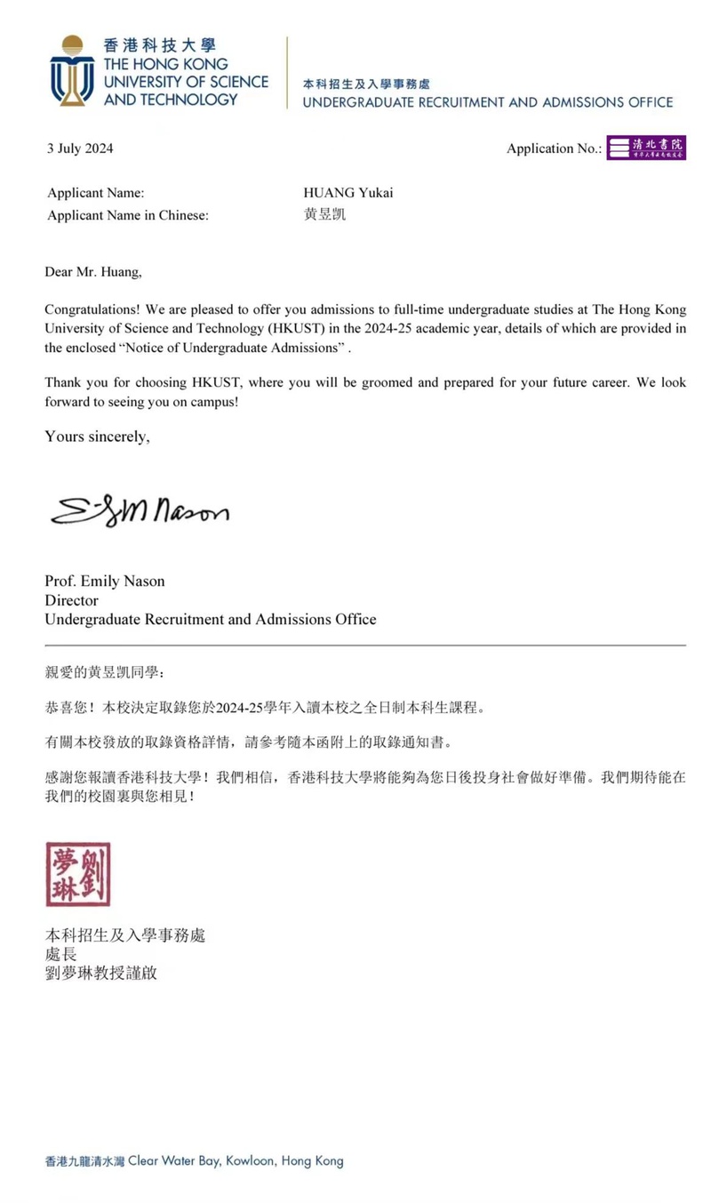 热烈祝贺清北书院多名同学被理想大学录取!