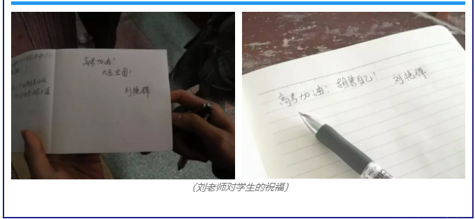 本次的讲座,龙陵一中的物理老师和数学老师也一起参与了进来,旨在互相交流,互相学习,共同进步。 中午12点20分,讲座结束,尽管耽误了同学们的休息时间,但同学们仍然是意犹未尽,掌声阵阵。还有两个学生一直留到了最后,想和刘老师继续交流,刘老师也给两位同学写下了高考祝福语。