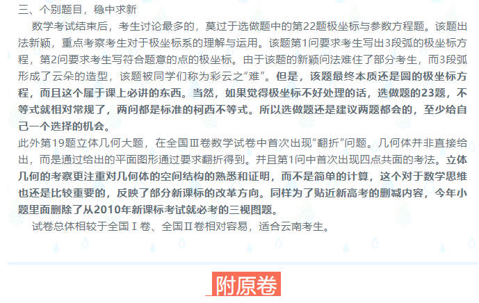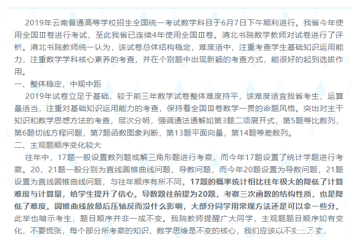2019年云南高考数学:中规中矩,稳中求新(附原卷)