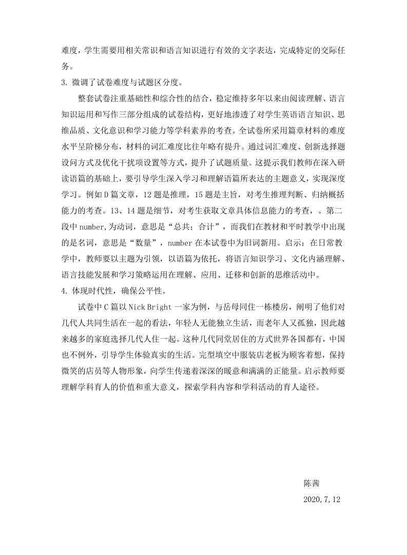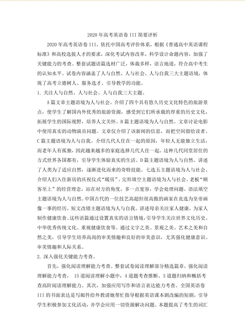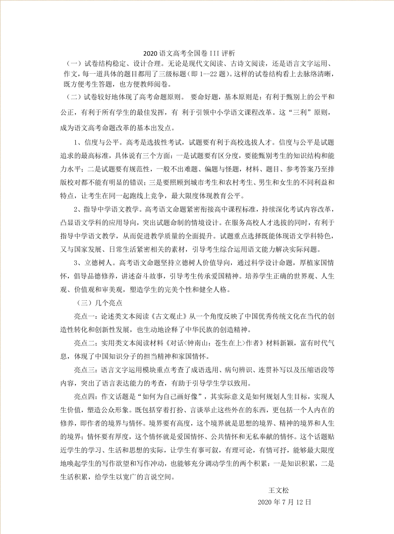 清北书院2020年高考语文、英语评析(新课标3卷)