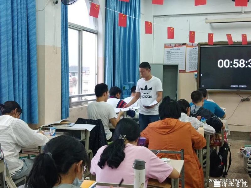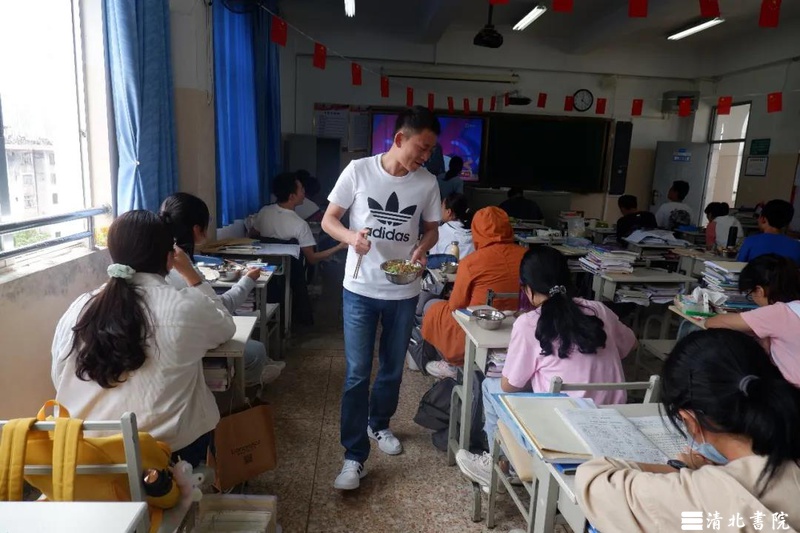 为此,清北书院成立了包含硕士学历、985本科、重点本科等一批具有教育情怀老师的德育处。德育处为每个班级配备了正副德育班主任,负责学生的衣食住行、心理动态,以及班级纪律。同时教务部门成立了教务班主任团队,由校长助理任组长和督导。教务班主任主要负责学生和任课老师的磨合,做到学习和课堂上有问题后第一时间处理。两个班子分工明确,有力的保障普遍学生的成绩提升。接下来,让我们去看看一位优秀德育班主任蒋老师平时的工作吧!